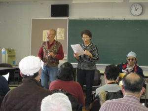 交流会報告(2月) お知らせ 2018.02.21 交流会報告(2月) 少し遅くなりましたが、新年会を兼ねて、2月の交流会を実施しました。 ガイドを含め、30人以上の出席があり、松花堂弁当を食べて頂いたあと、 糀家龍笑さんの落語、田口将貴さんの歌とギター、前田佐智子さんの歌を楽しんで頂きました。 また、全員で「上を向いて歩こう」「明日があるさ」「ふるさと」等を歌い、楽しいひと時を過ごしました。